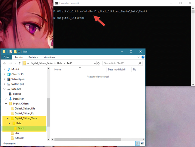 Crearea unui folder cu sub-foldere, folosind MKDIR în Linia de comandă