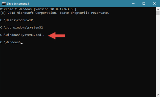 Executarea comenzii CD.. pentru a urca un nivel în arborele de directoare » Executarea comenzii CD.. pentru a urca un nivel în arborele de directoare
