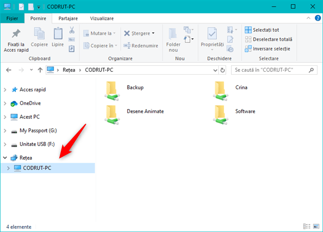 Lista de foldere partajate cu rețeaua