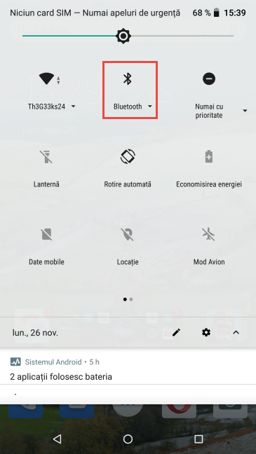 Pictograma Bluetooth din setările rapide ale Android