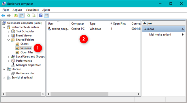 Secțiunea Sessions îți arată lista de utilizatori conectați în prezent la folderele partajate » Secțiunea Sessions îți arată lista de utilizatori conectați în prezent la folderele partajate
