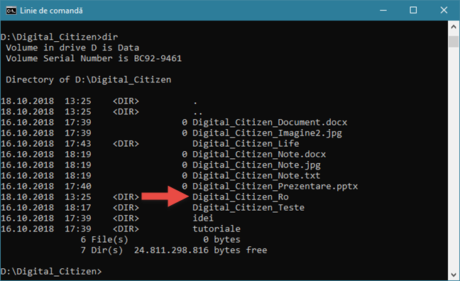 Utilizarea comenzii DIR pentru a vedea conținutul unui director, în Linia de comandă » Utilizarea comenzii DIR pentru a vedea conținutul unui director, în Linia de comandă